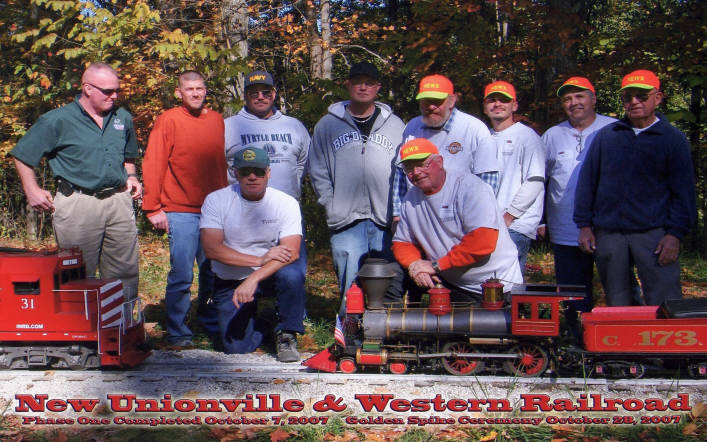 Pete takes a few minutes to recognize everyone present who helped on the construction of the New Unionville and Western Railroad.